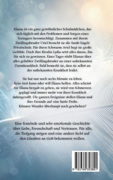 Eliana ist ein ganz gewöhnliches Schulmädchen, das sich täglich mit den Problemen und Sorgen eines Teenagers herumschlägt. Zusammen mit ihrem Zwillingsbruder Uriel besucht sie die Sankt Engels Privatschule. Für ihren Schwarm Aviel hegt sie große Gefühle. Doch ihre Rivalin Lydia setzt alles daran, ihn für sich zu gewinnen. Eines Tages stirbt Elianas über alles geliebter Zwillingsbruder an einer unbekannten Darmkrankheit. Bald bemerkt sie, dass sie selbst an der unbekannten Krankheit leidet. Sie hat nur noch sechs Monate zu leben. Kein Arzt kann oder will Eliana helfen. Alles scheint für Eliana bergab zu gehen, sie wird von Schmerzen geplagt und immer mehr von ihrer Krankheit dahingerafft. Die ganzen Ereignisse stellen Eliana und ihre Freunde auf eine harte Probe. Können Wunder überhaupt noch geschehen? Eine fesselnde und sehr emotionale Geschichte über Liebe, Freundschaft und Vertrauen. Für alle, die Tiefgang mögen und eine andere Sicht auf den Glauben an Gott bekommen wollen.