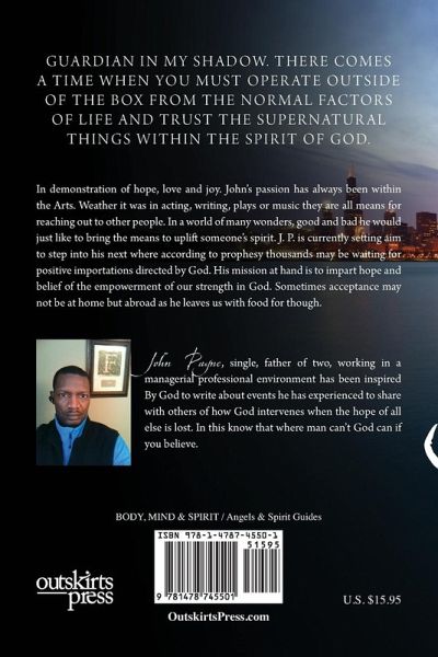 There comes a time when you must operate outside of the box from the normal factors of life and trust the supernatural things within the spirit of God. We, men and women living in today's times need encouragement, hope, self-esteem, love and the will to press and strive to be victorious. No matter what the situation may be, we can all do so through our faith and belief in God. I believe where man can't God can. Throughout this book you will experience with me true events which have occurred within my life of how a Guardian has mysteriously interacted in my behalf through trails, tribulations and sometimes bad decision that I had made. Yet through God's mercy and grace the favor of God prevailed. Who may the Guardian be in the cases you're about to experience? Whatever the case may be it appears to have been sent or ordered by God. Angelic at times, one who guards, governs, and guides like Daddy God himself. The Guardian you'll about to meet showed representation and demonstrations of the names of God. I believe, The Guardian in My Shadow.