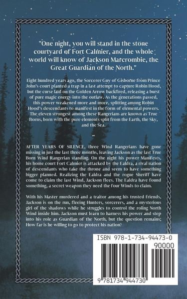 Eight hundred years ago, a powerful sorcerer laid a trap for Robin Hood. But the curse backfired, releasing a burst of pure magic. Robin Hood's descendants carry this magic as elemental powers. The two nations of descendants are on the brink of war. Jack's North Wind power is about to manifest when the rival nation attacks, hunting the last Wind. Jack is forced to abandon his court in a fiery escape. Now he's on the run from the mercenary Sheriff, sorcerers, and a mysterious girl of the shadows as he struggles to contain his chaotic power. Rumors grow of the ancient sorcerer's return, and Jack is faced with the horrifying realization that his power is part of a much larger plan. The rival nation has discovered a secret weapon, and Jack is the last Wind keeping them from unleashing its ancient magic.