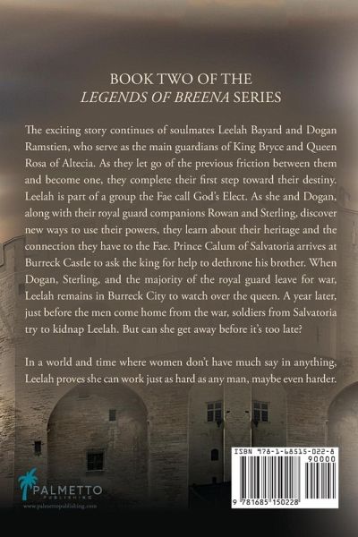 Book two of the Legends of Breena series. The exciting story continues of soulmates Leelah Bayard and Dogan Ramstien, who serve as the main guardians of King Bryce and Queen Rosa of Altecia. As they let go of the previous friction between them and become one, they complete their first step toward their destiny. Leelah is part of a group the Fae call God's Elect. As she and Dogan, along with their royal guard companions Rowan and Sterling, discover new ways to use their powers, they learn about their heritage and the connection they have to the Fae. Prince Calum of Salvatoria arrives at Burreck Castle to ask the king for help to dethrone his brother. When Dogan, Sterling, and the majority of the royal guard leave for war, Leelah remains in Burreck City to watch over the queen. A year later, just before the men come home from the war, soldiers from Salvatoria try to kidnap Leelah. But can she get away before it's too late? In a world and time where women don't have much say in anything, Leelah proves she can work just as hard as any man, maybe even better.