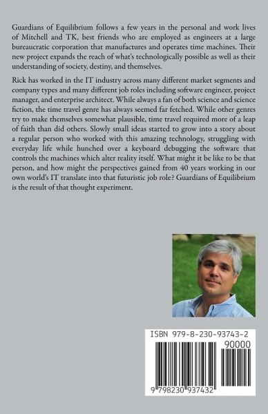 Guardians of Equilibrium follows a few years in the personal and work lives of Mitchell and TK, best friends who are employed as engineers at a large bureaucratic corporation that manufactures and operates time machines. Their new project expands the reach of what's technologically possible as well as their understanding of society, destiny, and themselves. Rick has worked in the IT industry across many different market segments and company types and many different job roles including software engineer, project manager, and enterprise architect. While always a fan of both science and science fiction, the time travel genre has always seemed far fetched. While other genres try to make themselves somewhat plausible, time travel required more of a leap of faith than did others. Slowly small ideas started to grow into a story about a regular person who worked with this amazing technology, struggling with everyday life while hunched over a keyboard debugging the software that controls the machines which alter reality itself. What might it be like to be that person, and how might the perspectives gained from 40 years working in our own world's IT translate into that futuristic job role? Guardians of Equilibrium is the result of that thought experiment.