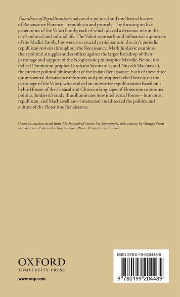 Guardians of Republicanism examines the relationship between the Valori family and the political and intellectual evolution of the Florentine Renaissance. Following the family's fortunes over five generations, Jurdjevic retraces its involvement in the political struggles that marked this turbulent period in the history of Florence.