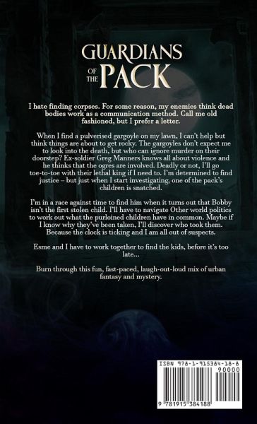 Guardians of the Pack Blurb: I hate finding corpses. For some reason, my enemies think dead bodies work as a communication method. Call me old fashioned, but I prefer a letter. When I find a pulverised gargoyle on my lawn, I can't help but think things are about to get rocky. The gargoyles don't expect me to look into the death, but who can ignore murder on their doorstep? Ex-soldier Greg Manners knows all about violence and he thinks that the ogres are involved. Deadly or not, I'll go toe-to-toe with their lethal king if I need to. I'm determined to find justice - but just when I start investigating, one of the pack's children is snatched. I'm in a race against time to find him when it turns out that Bobby isn't the first stolen child. I'll have to navigate Other world politics to work out what the purloined children have in common. Maybe if I know why they've been taken, I'll discover who took them. Because the clock is ticking and I am all out of suspects. Esme and I have to work together to find the kids, before it's too late... Description: Fans of Annette Marie, Helen Harper and Patricia Briggs will love this series. This is a fun urban fantasy mystery novel featuring a strong female protagonist, with werewolves, gargoyles and witches.