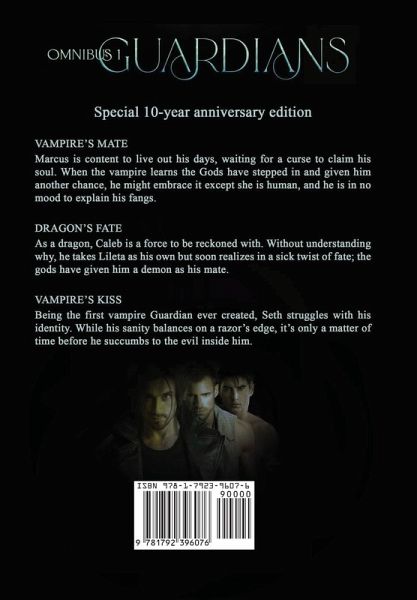 Vampire's Mate: He's not your normal guardian angel. After losing the woman he loved in a demonic war, Marcus is content to live out his immortal days serving his king and waiting for a curse to claim his soul. When the vampire learns fate has stepped in and given him another chance, he might embrace it except she is human, and he is in no mood to explain his fangs. She is destined to be his. After being left at the altar, Cassandra swears off all relationships. It doesn't take long for her to learn that dreams do become reality when the sexy stranger who has been interrupting her sleep shows up for real. In the blink of an eye, she learns that he is a guardian to mortals, and he drinks blood. A vampire's world is full of things that go bump in the night, and something evil is coming to claim Marcus. Cassie isn't ready for what this kind of relationship means until his life is threatened. Saving him means the ultimate sacrifice but doing nothing means losing him forever. Dragon's Fate: Caleb is dark, hot, and commanding in human form. As a dragon, he's a force to be reckoned with. When he witnesses the slave Lileta being beaten by his Overlord Odage, he nearly comes unglued. Without understanding why, he asks to take Lileta as his own, but soon realizes his longing is more than an attraction to a beautiful woman. In a sick twist of fate, the gods have given him a demon as his mate-one he can never touch unless he wishes his own death. His only choice is to grant her freedom. Abducted as a teen, and later purchased by a dragon Overlord, Lileta's venomous touch remains her only safeguard as a slave. When the demon's rebellious nature brings about a brutal punishment, Caleb steps in and takes her as his own. As if having the sexy dragon save the day isn't bad enough, she soon realizes they are destined to be together. Mating is out of the question. The abduction of a goddess intertwines their paths once again, spiraling them to the brink of passion. Unable to resist their fatal desire, the two must trust fate and hope they don't destroy each other. Vampire's Kiss: Being the first vampire Guardian ever created, Seth Ruiz struggles with his identity. While his sanity balances on a razor's edge, it's only a matter of time before he succumbs to the evil inside him. When realization strikes that the fiery Kaitlyn belongs to him, he must not only battle his past demons, but fight his desire to claim her or chance killing them both. Handed a dagger as a child, Kaitlyn O'Hara has slaughtered demons her entire life. It should come as no surprise that she is also destined to save a crazy vampire. When fate reveals her true identity, she must search her heart for the courage to move forward. Katie holds the key to help save humanity. With Seth's dark side edging closer, he prays he can keep it together long enough to protect her through the challenges she must face. However, he could prove to be her biggest threat.