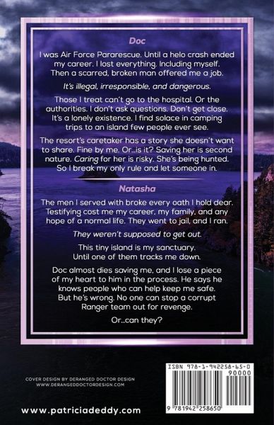 Doc I was Air Force Pararescue. Until a helo crash ended my career. I lost everything. Including myself. Then a scarred, broken man offered me a job. It's illegal, irresponsible, and dangerous. Those I treat can't go to the hospital. Or the authorities. I don't ask questions. Don't get close. It's a lonely existence. I find solace in camping trips to an island few people ever see. The resort's caretaker has a story she doesn't want to share. Fine by me. Or...is it? Saving her is second nature. Caring for her is risky. She's being hunted. So I break my only rule and let someone in. Natasha The men I served with broke every oath I hold dear. Testifying cost me my career, my family, and any hope of a normal life. They went to jail, and I ran. They weren't supposed to get out. This tiny island is my sanctuary. Until one of them tracks me down. Doc almost dies saving me, and I lose a piece of my heart to him in the process. He says he knows people who can help keep me safe. But he's wrong. No one can stop a corrupt Ranger team out for revenge. Or...can they?