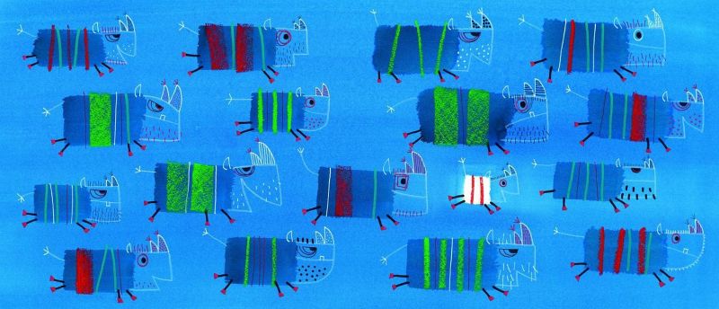 Öffne die eingeklappten Seiten und lande in einer Welt, in der sich viereckige und quadratische Formen in originelle, eigenwillige Tiere verwandeln. Starke Nashörner galoppieren vorbei, Rehe zeigen stolz ihr Geweih und ein Tausendfüßler marschiert über das Papier. Ihre zielstrebige und selbstsichere Art passt sehr gut zu der viereckigen Form. Ein Buch, das man immer wieder anschauen kann, weil man jedes Mal etwas Neues entdeckt.
