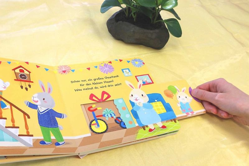 Der kleine Hase hat Geburtstag. Was wohl der Postbote für das Geburtstagskind dabei hat? Schnell, öffne das große Geschenk und sieh nach, was drin ist. Probiere die Schiebeeffekte aus und finde heraus, was es auf der Geburtstagsfeier Tolles zu entdecken gibt.