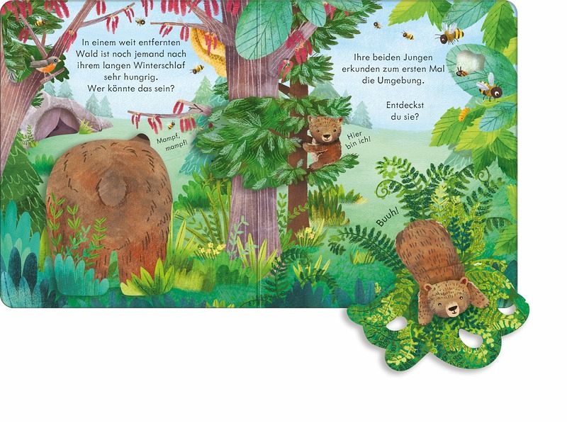 Wenn im Frühling die Tage wärmer werden, sprießen Blätter und Blumen und die Tiere werden munter. Schau durch Gucklöcher und hinter Klappen, um Vogelküken, Kaulquappen und andere Tiere zu entdecken. So findest du heraus, was in dieser schönen Jahreszeit auf der Wiese, im Teich und im Wald passiert!