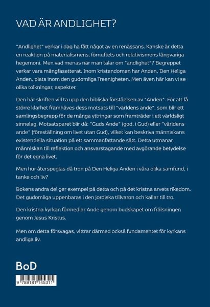 GUDS ANDE eller världens ande Denna skrift sätter frågan om livsinriktning på sin spets: Vilka grundvärderingar har vi, vilken människosyn, vad betyder hopp och kärlek, himmel och evigt liv, varför finns så mycket ont m.m. Välkommen att reflektera tillsammans med medvandrare på livets väg, som ger sin syn på livsinriktning med andlig infallsvinkel! Bibeln är utgångspunkten.