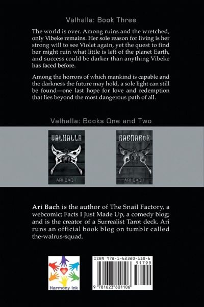 Valhalla: Book Three The world is over. Among ruins and the wretched, only Vibeke remains. Her sole reason for living is her strong will to see Violet again, yet the quest to find her might ruin what little is left of the planet Earth, and success could be darker than anything Vibeke has faced before. Among the horrors of which mankind is capable and the darkness the future may hold, a sole light can still be found-one last hope for love and redemption that lies beyond the most dangerous path of all.