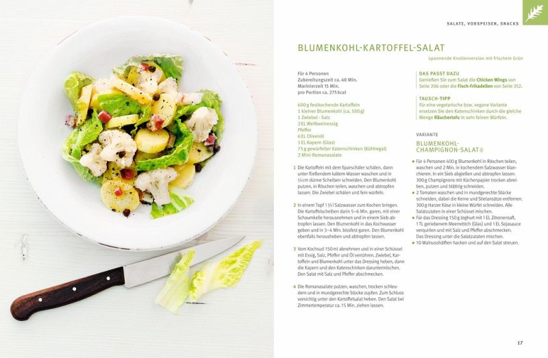 Salate, Vorspeisen und SnacksSuppen und EintöpfeNudeln, Reis und GetreideGemüse satt Fleisch, Fisch und Geflügel Süßes und Desserts