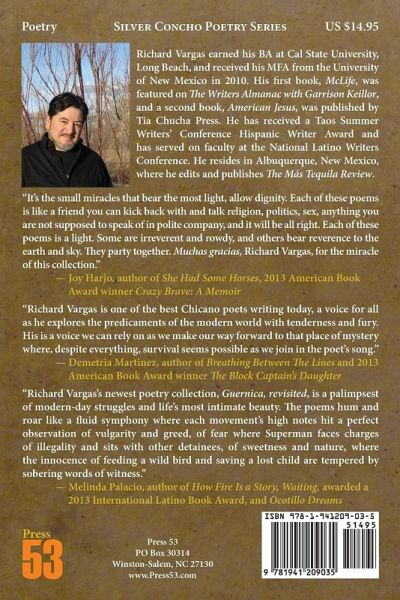 "Richard Vargas is one of the best Chicano poets writing today, a voice for all as he explores the predicaments of the modern world with tenderness and fury. His is a voice we can rely on as we make our way forward to that place of mystery where, despite everything, survival seems possible as we join in the poet's song." - Demetria Martinez, author of Breathing Between The Lines, The Devil's Workshop, and 2013 American Book Award winner The Block Captain's Daughter