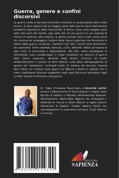 La guerra mette in pericolo l'umanità e minaccia la continuazione della civiltà umana. Si dice spesso che la maggior parte delle guerre derivi dall'impulso predatorio egemonico della mascolinità. In Africa, come nella maggior parte delle altre parti del mondo, ogni volta che c'è una guerra (o una violenza di massa di qualsiasi altra natura), la gente comune viene usata come carne da cannone per proteggere i potenti della classe superiore che formulano le lettere della guerra. Le donne, i bambini e gli "altri" uomini sono facilmente i più vulnerabili. Sono violentati, torturati, uccisi, affamati, vedovi ed esposti a ogni sorta di insicurezza e depredazione. Alla fine, come sostengono le femministe, sono caratterizzate in modo marginale nei discorsi di guerra della classe superiore, dominati dagli uomini. L'autrice ha scelto deliberatamente il numero di testi letterari sulla base dell'uguaglianza di genere per individuare i principali centri di contesa del discorso. Questo libro valuta sei romanzi sulla guerra tra Nigeria e Biafra e ipotizza che vi siano significative distanze soggettive negli spazi discorsivi privilegiati dagli scrittori maschi e femmine sulla guerra.