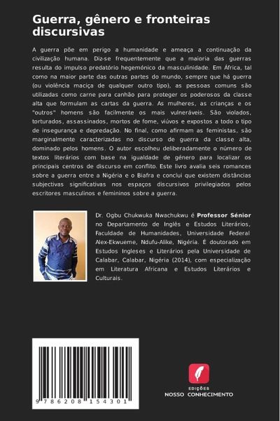 A guerra põe em perigo a humanidade e ameaça a continuação da civilização humana. Diz-se frequentemente que a maioria das guerras resulta do impulso predatório hegemónico da masculinidade. Em África, tal como na maior parte das outras partes do mundo, sempre que há guerra (ou violência maciça de qualquer outro tipo), as pessoas comuns são utilizadas como carne para canhão para proteger os poderosos da classe alta que formulam as cartas da guerra. As mulheres, as crianças e os "outros" homens são facilmente os mais vulneráveis. São violados, torturados, assassinados, mortos de fome, viúvos e expostos a todo o tipo de insegurança e depredação. No final, como afirmam as feministas, são marginalmente caracterizadas no discurso de guerra da classe alta, dominado pelos homens. O autor escolheu deliberadamente o número de textos literários com base na igualdade de género para localizar os principais centros de discurso em conflito. Este livro avalia seis romances sobre a guerra entre a Nigéria e o Biafra e conclui que existem distâncias subjectivas significativas nos espaços discursivos privilegiados pelos escritores masculinos e femininos sobre a guerra.
