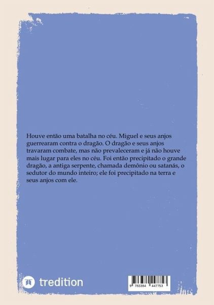 "Houve então uma batalha no céu. Miguel e seus anjos guerrearam contra o dragão. O dragão e seus anjos travaram combate, mas não prevaleceram e já não houve mais lugar para eles no céu. Foi então precipitado o grande dragão, a antiga serpente, chamada demônio ou satanás, o sedutor do mundo inteiro; ele foi precipitado na terra e seus anjos com ele.Ouvi então uma voz forte no céu que dizia: Agora chegou a salvação, o poder e o reino de nosso Deus assim como a autoridade de seu cristo, porque o acusador de nossos irmãos foi expulso, aquele que os acusava dia e noite diante de nosso Deus. E eles…mehr