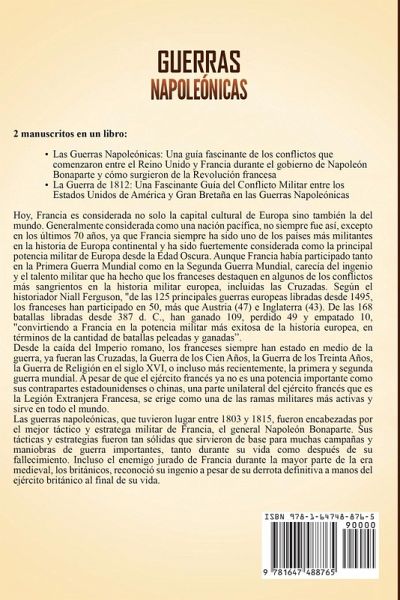 Two manuscritos completos en 1 libroLas Guerras Napoleónicas: Una guía fascinante de los conflictos que comenzaron entre el Reino Unido y Francia durante el gobierno de Napoleón Bonaparte y cómo surgieron de la Revolución francesa La Guerra de 1812: Una Fascinante Guía del Conflicto Militar entre los Estados Unidos de América y Gran Bretaña en las Guerras Napoleónicas Las guerras napoleónicas, que tuvieron lugar entre 1803 y 1815, fueron encabezadas por el mejor táctico y estratega militar de Francia, el general Napoleón Bonaparte. Sus tácticas y estrategias fueron tan sólidas que sirvieron de base para muchas campañas y maniobras de guerra importantes, tanto durante su vida como después de su fallecimiento. Incluso el enemigo jurado de Francia durante la mayor parte de la era medieval, los británicos, reconocieron su ingenio a pesar de su derrota definitiva a manos del ejército británico al final de su vida. En este libro, haremos un interesante viaje a través de los anales de la historia para inspeccionar las guerras napoleónicas: por qué comenzaron, un vistazo a la vida del legendario comandante Napoleón Bonaparte, el curso de los acontecimientos y algunos de los principales jugadores en el tablero, y las historias del último atisbo de la grandeza militar de Francia. Si bien el ejército francés jugó un papel crucial en ambas guerras mundiales, palidecen en comparación con el ejército de Francia, que fue dirigido por una de las mentes militares más brillantes de la historia, durante la última gran campaña militar del país contra su mayor rival, Gran Bretaña. En este libro fascinante sobre las guerras napoleónicas y la Revolución francesa, examinaremos el papel de Napoleón en la guerra no solo como un genio militar, sino también como político, gobernante y reformador social, y quizás descubramos algunos de los aspectos más dudosos de la leyenda acerca Napoleón Bonaparte. La primera parte de este libro incluye:La Revolución francesa y la Francia posterior a la revolución Las guerras revolucionarias francesas: una Europa dividida El ascenso político de Napoleón Bonaparte El surgimiento del bonapartismo: una monarquía alternativa se prepara para las guerras napoleónicas El comienzo de las guerras napoleónicas Las guerras napoleónicas, parte 1 Las guerras napoleónicas, parte 2 Perspectiva sociopolítica británica de las guerras revolucionarias francesas y las guerras napoleónicas Causas de la caída de Napoleón ¡Y mucho, mucho más! Segunda parte de este libro, usted:El preludio de la guerra Actores Clave y Estadísticas de la guerra de 1812 Cronología de la guerra de 1812 La guerra de 1812- La Invasión de Canadá La guerra de 1812- La Conquista del Oeste La guerra de 1812- La Batalla de Creek La guerra de 1812- Batallas Navales ¡Y mucho, mucho más! ¡Consiga este libro ahora para aprender más sobre Las Guerras Napoleónicas y la guerra de 1812!