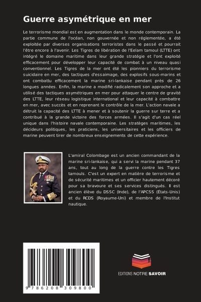 Le terrorisme mondial est en augmentation dans le monde contemporain. La partie commune de l'océan, non gouvernée et non réglementée, a été exploitée par diverses organisations terroristes dans le passé et pourrait l'être encore à l'avenir. Les Tigres de libération de l'Eelam tamoul (LTTE) ont intégré le domaine maritime dans leur grande stratégie et l'ont exploité efficacement pour développer leur capacité de combat à un niveau quasi conventionnel. Les Tigres de la mer ont été les pionniers du terrorisme suicidaire en mer, des tactiques d'essaimage, des explosifs sous-marins et ont combattu efficacement la marine sri-lankaise pendant près de 26 longues années. Enfin, la marine a modifié radicalement son approche et a utilisé des tactiques asymétriques en mer pour attaquer le centre de gravité des LTTE, leur réseau logistique international et leur capacité à combattre en mer, avec succès et en reprenant le contrôle de la mer. L'action navale a détruit la capacité des LTTE à mener et à soutenir la guerre sur terre et a contribué à la grande victoire des forces armées. Il s'agit d'un cas réel unique dans l'histoire navale contemporaine. Les stratèges maritimes, les décideurs politiques, les praticiens, les universitaires et les officiers de marine peuvent tirer de nombreux enseignements de cette expérience.