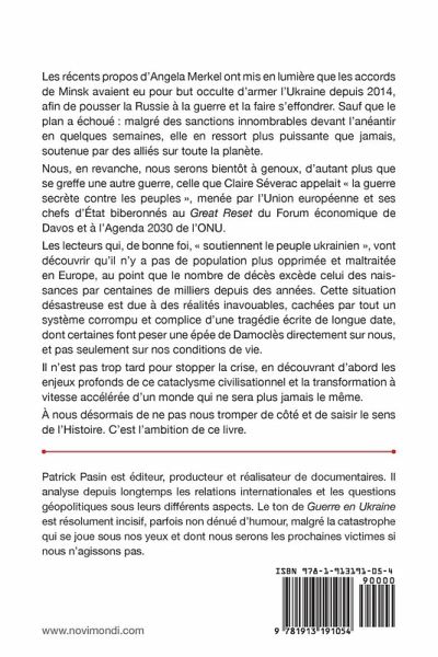 Les récents propos d'Angela Merkel ont mis en lumière que les accords de Minsk avaient eu pour but occulte d'armer l'Ukraine depuis 2014, afin de pousser la Russie à la guerre et la faire s'effondrer. Sauf que le plan a échoué : malgré des sanctions innombrables devant l'anéantir en quelques semaines, elle en ressort plus puissante que jamais, soutenue par des alliés sur toute la planète. Nous, en revanche, nous serons bientôt à genoux, d'autant plus que se greffe une autre guerre, celle que Claire Séverac appelait la guerre secrète contre les peuples , menée par l'Union européenne et ses chefs d'État biberonnés au Great Reset du Forum économique de Davos et à l'Agenda 2030 de l'ONU. Les lecteurs qui, de bonne foi, soutiennent le peuple ukrainien , vont découvrir qu'il n'y a pas de population plus opprimée et maltraitée en Europe, au point que le nombre de décès excède celui des naissances par centaines de milliers depuis des années. Cette situation désastreuse est due à des réalités inavouables, cachées par tout un système corrompu et complice d'une tragédie écrite de longue date, dont certaines font peser une épée de Damoclès directement sur nous, et pas seulement sur nos conditions de vie. Il n'est pas trop tard pour stopper la crise, en découvrant d'abord les enjeux profonds de ce cataclysme civilisationnel et la transformation à vitesse accélérée d'un monde qui ne sera plus jamais le même. À nous désormais de ne pas nous tromper de côté et de saisir le sens de l'Histoire. C'est l'ambition de ce livre.