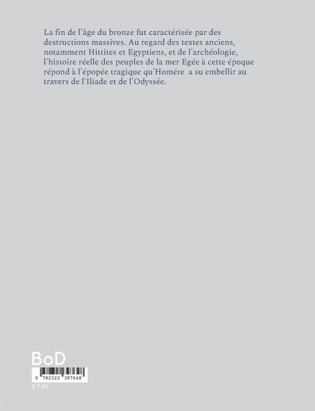 La fin de l'âge du bronze fut caractérisée par des destructions massives. Au regard des textes anciens, notamment Hittites et Egyptiens, et de l'archéologie, l'histoire des peuples de la mer Egée répond à l'épopée tragique qu'Homère a su embellir au travers de l'Iliade et de l'Odyssée.