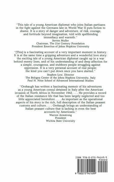 WALTER W. OREBAUGH, born in Kansas in 1910, graduated from Wichita University and was selected for the United States Foreign Service in 1932. He was promoted to consul in 1941 and transferred to Nice, in Vichy-controlled France. His subsequent capture by Italian soldiers, incarceration in Italy, and escape are the subjects of this book. After the war, he worked as U.S. Consul in Italy and as Chief of a branch of the CIA. He later accepted the position as Vice-Director of the Bologna Center of the School of Advanced International Studies for Johns Hopkins University. Orebaugh retired permanently in 1975, and is particularly proud of his Medal of Freedom, three Italian medals, and the President's Medal of Johns Hopkins University. CAROL JOSE, a native of New Jersey, attended Miami University, Ohio, the University of Hawaii, and the University of Central Florida, receiving a B.S. in French Literature (1971) and a Masters degree in Business Administration (1976). Now a free-lance writer and journalist, she has colloborated on, and edited, several books, and writes a weekly newspaper column on food and the culinary arts.