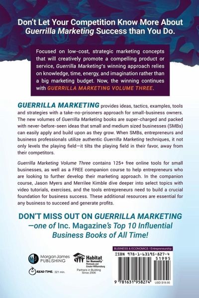 Focused on low-cost, strategic marketing concepts that will creatively promote a compelling product or service, Guerrilla Marketing's winning approach relies on knowledge, time, energy, and imagination rather than a big marketing budget. Now, the winning continues with Guerrilla Marketing Volume 3.