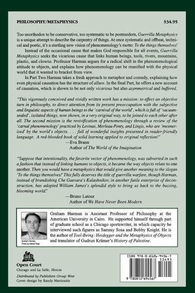 In Guerrilla Metaphysics, Graham Harman develops further the object-oriented philosophy first proposed in Tool-Being. Today's fashionable philosophies often treat metaphysics as a petrified relic of the past, and hold that future progress requires an ever further abandonment of all claims to discuss reality in itself. Guerrilla Metaphysics makes the opposite assertion, challenging the dominant "philosophy of access" (both continental and analytic) that remains quarantined in discussions of language, perception, or literary texts. Philosophy needs a fresh resurgence of the things themselves-not merely the words or appearances themselves. Once these themes are adapted to the needs of an object-oriented philosophy, what emerges is a brand new type of metaphysics-a "guerrilla metaphysics."