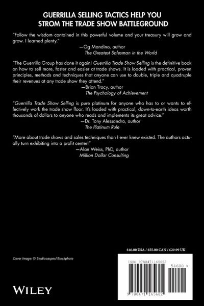 "Follow the wisdom contained in this powerful volume and your treasury will grow and grow. I learned plenty." -- Og Mandino, author The Greatest Salesman in the World "The Guerrilla Group has done it again! Guerrilla Trade Show Selling is the definitive book on how to sell more, faster and easier at trade shows. It is loaded with practical, proven principles, methods and techniques that anyone can use to double, triple and quadruple their revenues at any trade show they attend." -- Brian Tracy, author The Psychology of Achievement. "Guerrilla Trade Show Selling is pure platinum for anyone who has to or wants to effectively work the trade show floor. It's loaded with practical, down-to-earth ideas worth thousands of dollars to anyone who reads and implements its great advice." -- Dr. Tony Alessandra, author The Platinum Rule. "More about trade shows and sales techniques than I ever knew existed. The authors actually turn exhibiting into a profit center!" -- Alan Weiss, PhD, author Million Dollar Consulting