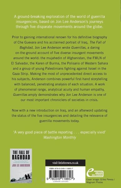 Prior to gaining international renown for his definitive biography of Che Guevara and his firsthand reports on the war in Iraq in the acclaimed THE FALL OF BAGHDAD, Jon Lee Anderson wrote GUERRILLAS, a daring on-the-ground account of five diverse insurgent movements around the world: the mujahedin of Afghanistan, the FMLN of El Salvador, the Karen of Burma, the Polisario of Western Sahara, and a group of young Palestines fighting against Israel in the Gaza Strip. Making the most of unprecedented, direct access to his subjects, Anderson combines powerful storytelling with a balanced, penetrating analysis of each situation. A work of phenomenal range, analytical acuity, and human empathy, GUERRILLAS amply demonstrates why Jon Lee Anderson is one of our most important chroniclers of societies in crisis.