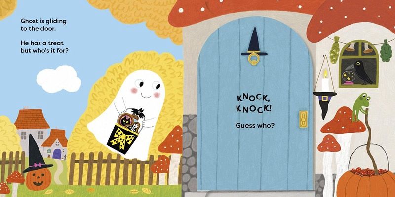 Celebrate Halloween through the popular “booing” trend in this interactive, split-page surprise! Friendly Halloween characters visit one another to deliver Halloween treats without being seen. When each door is opened, it reveals a different character being “booed,” while the giver of the BOO is hidden behind the door flap. On the next spread, the character who has been BOOED goes on to BOO another friend, and so on. The final spread reveals all 4 characters, who have previously been BOOED, as they head to one final door with a mirror behind it. Guess who they BOO? It’s YOU, the reader. “Booing” rose in popularity during the pandemic when Halloween activities such as school parties and neighborhood gatherings couldn’t take place. Booing became the ultimate socially distanced way of having Halloween fun and showing the special people in your life your appreciation. Listen to the free Stories Aloud audiobook— just scan the QR code on the back cover to read along with the story!
