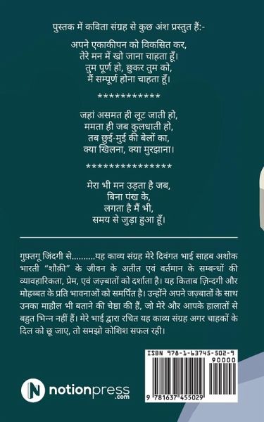 Guftagoo Zindagi Se... Shoki ke Alfazon Mein... carries my father's thoughts, his way of looking at society and his experiences. This book is his dream to reach out to people but he couldn't do it while he was between us. He also saw corona in an entirely different way, which many of us couldn't even think of, which you will get to know once you read his poems.