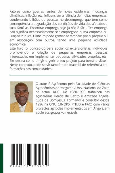 Fatores como guerras, surtos de novas epidemias, mudanças climáticas, inflação, etc. influenciam a falência de muitas empresas, condenando bilhões de pessoas no desemprego que tem como consequência a degradação das condições de vida dos afetados e suas famílias. Encontrar emprego hoje já não é fácil. Ter emprego não significa necessariamente ser empregado numa empresa ou Função Pública. Dinheiro pode ganhar-se também por si próprio ou em associação com outros, tendo uma pequena atividade económica.Este livro foi concebido para apoiar os extensionistas, indivíduos promovendo a criação de pequenas empresas, pessoas interessadas em implementar pequenas atividades próprias, etc. Ele ensina como dirigir e gerir o seu projeto para torná-lo viável. Neste contexto, pode servir também de material de referência em formações nas comunidades.