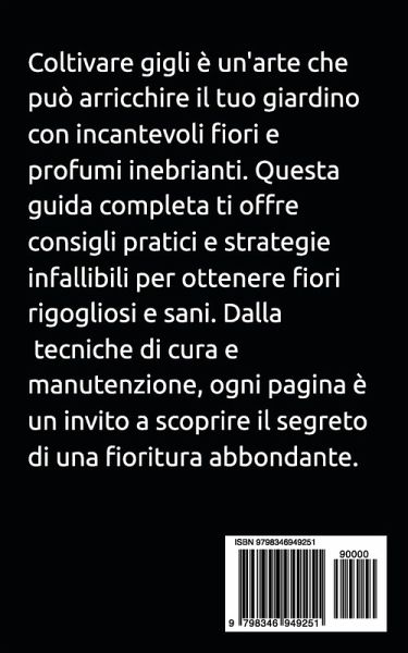 Coltivare gigli è un'arte che può arricchire il tuo giardino con incantevoli fiori e profumi inebrianti. Questa guida completa ti offre consigli pratici e strategie infallibili per ottenere fiori rigogliosi e sani. Dalla tecniche di cura e manutenzione, ogni pagina è un invito a scoprire il segreto di una fioritura abbondante. Sia tu un giardiniere esperto che un principiante, trasforma il tuo spazio verde in un'oasi di bellezza con i gigli come protagonisti!