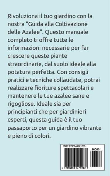 Rivoluziona il tuo giardino con la nostra "Guida alla Coltivazione delle Azalee". Questo manuale completo ti offre tutte le informazioni necessarie per far crescere queste piante straordinarie, dal suolo ideale alla potatura perfetta. Con consigli pratici e tecniche collaudate, potrai realizzare fioriture spettacolari e mantenere le tue azalee sane e rigogliose. Ideale sia per principianti che per giardinieri esperti, questa guida è il tuo passaporto per un giardino vibrante e pieno di colori. Non lasciare che il tuo giardino resti in ombra: rendilo protagonista con le azalee!