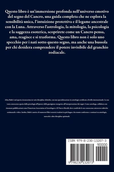 Questo libro è un'immersione profonda nell'universo emotivo del segno del Cancro, una guida completa che ne esplora la sensibilità unica, l'intuizione protettiva e il legame ancestrale con la Luna. Attraverso l'astrologia, la mitologia, la psicologia e la saggezza esoterica, scoprirete come un Cancro pensa, ama, reagisce e si trasforma. Questo libro non è solo uno specchio per i nati sotto questo segno, ma anche una bussola per chi desidera comprendere il potere invisibile del granchio zodiacale.