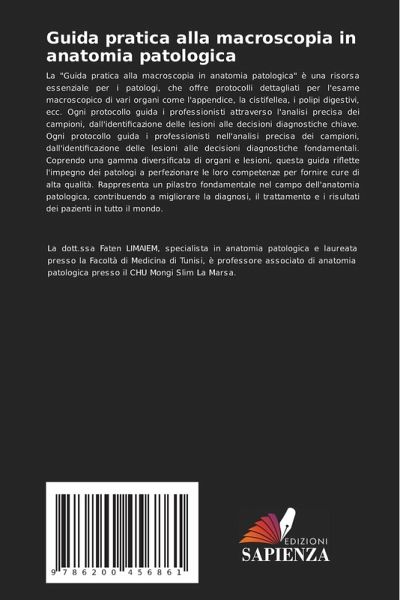 La "Guida pratica alla macroscopia in anatomia patologica" è una risorsa essenziale per i patologi, che offre protocolli dettagliati per l'esame macroscopico di vari organi come l'appendice, la cistifellea, i polipi digestivi, ecc. Ogni protocollo guida i professionisti attraverso l'analisi precisa dei campioni, dall'identificazione delle lesioni alle decisioni diagnostiche chiave. Ogni protocollo guida i professionisti nell'analisi precisa dei campioni, dall'identificazione delle lesioni alle decisioni diagnostiche fondamentali. Coprendo una gamma diversificata di organi e lesioni, questa guida riflette l'impegno dei patologi a perfezionare le loro competenze per fornire cure di alta qualità. Rappresenta un pilastro fondamentale nel campo dell'anatomia patologica, contribuendo a migliorare la diagnosi, il trattamento e i risultati dei pazienti in tutto il mondo.