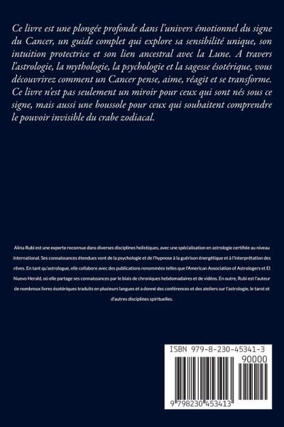 Ce livre est une plongée profonde dans l'univers émotionnel du signe du Cancer, un guide complet qui explore sa sensibilité unique, son intuition protectrice et son lien ancestral avec la Lune. A travers l'astrologie, la mythologie, la psychologie et la sagesse ésotérique, vous découvrirez comment un Cancer pense, aime, réagit et se transforme. Ce livre n'est pas seulement un miroir pour ceux qui sont nés sous ce signe, mais aussi une boussole pour ceux qui souhaitent comprendre le pouvoir invisible du crabe zodiacal.