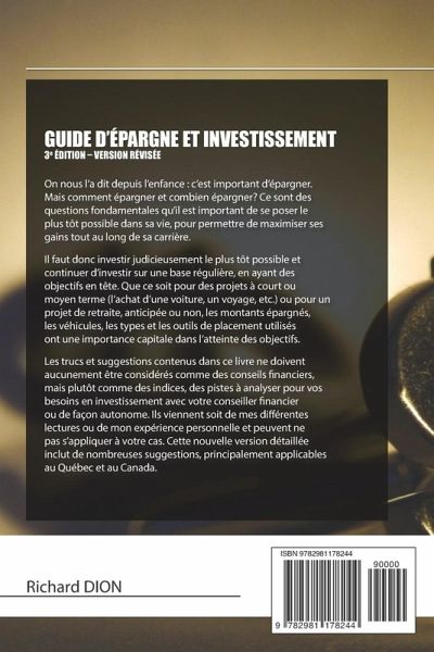On nous l'a dit depuis l'enfance: c'est important d'épargner. Mais comment épargner et combien épargner? Ce sont des questions fondamentales qu'il est important de se poser le plus tôt possible dans sa vie, pour permettre de maximiser ses gains tout au long de sa carrière. Il faut donc investir judicieusement le plus tôt possible et continuer d'investir sur une base régulière, en ayant des objectifs en tête. Que ce soit pour des projets à court ou moyen terme (l'achat d'une voiture, un voyage, etc.) ou pour un projet de retraite, anticipée ou non, les montants épargnés, les véhicules, les types et les outils de placement utilisés ont une importance capitale dans l'atteinte des objectifs. Les trucs et suggestions contenus dans ce livre ne doivent aucunement être considérés comme des conseils financiers, mais plutôt comme des indices, des pistes à analyser pour vos besoins en investissement avec votre conseiller financier ou de façon autonome. Ils viennent soit de mes différentes lectures ou de mon expérience personnelle et peuvent ne pas s'appliquer à votre cas. Cette nouvelle version détaillée inclut de nombreuses suggestions, principalement applicables au Québec et au Canada.