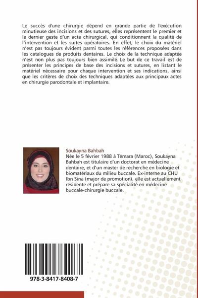 Le succès d'une chirurgie dépend en grande partie de l'exécution minutieuse des incisions et des sutures, elles représentent le premier et le dernier geste d'un acte chirurgical, qui conditionnent la qualité de l'intervention et les suites opératoires. En effet, le choix du matériel n'est pas toujours évident parmi toutes les références proposées dans les catalogues de produits dentaires. Le choix de la technique adaptée n'est non plus pas toujours bien assimilé. Le but de ce travail est de présenter les principes de base des incisions et sutures, en listant le matériel nécessaire pour chaque intervention et ses indications, ainsi que les critères de choix des techniques adaptées aux principaux actes en chirurgie parodontale et implantaire.