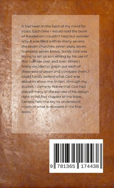 It had been in the back of my mind for years. Each time I would read the book of Revelation I couldn't help but wonder why it was filled with so many sevens: the seven churches, seven seals, seven trumpets, seven bowls. Surely God was trying to tell us something by his use of this number over and over. When I finally decided to graph out each of these sets of seven and compare each of them, I could hardly believe what God was about to show me. In fact, through my studies, I came to realize that God had placed many of the secrets of his design right in the first chapter of the Bible. Genesis held the key to understand much of what is revealed in the last days. After unlocking many of these mysteries, I realized that Revelation is much like a Guide through the Apocalypse.