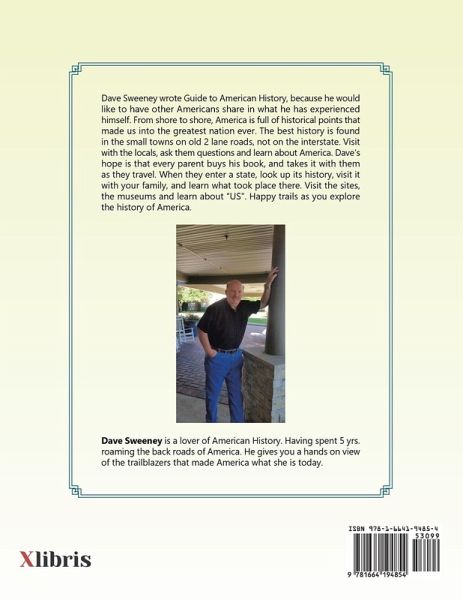 Dave Sweeney wrote Guide to American History, because he would like to have other Americans share in what he has experienced himself. From shore to shore, America is full of historical points that made us into the greatest nation ever. The best history is found in the small towns on old 2 lane roads, not on the interstate. Visit with the locals, ask them questions and learn about America. Dave's hope is that every parent buys his book, and takes it with them as they travel. When they enter a state, look up its history, visit it with your family, and learn what took place there. Visit the sites, the museums and learn about "US". Happy trails as you explore the history of America.
