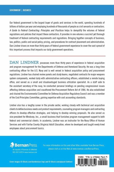 Dan Lindner possesses more than 40 years of experience in federal acquisition and program management for the Departments of Defense and Homeland Security. He was a long-time contracting officer for the Navy, and is well-versed in federal acquisition policy and procurement regulations. Lindner was an instructor for the Navy Office of Human Services and with Fairfax County (Virginia) Adult Education where he developed and taught newly hired employees procurement basics. He is the author of several books, including An Insider's Guide To Working for the Federal Government: Navigating All Levels of Government as a Civil Servant or Contractor (2020), A Guide To Federal Contracting: Principles and Practices, Second Edition (2022) and A Guide To Defense Contracting: Principles and Practices (2024).