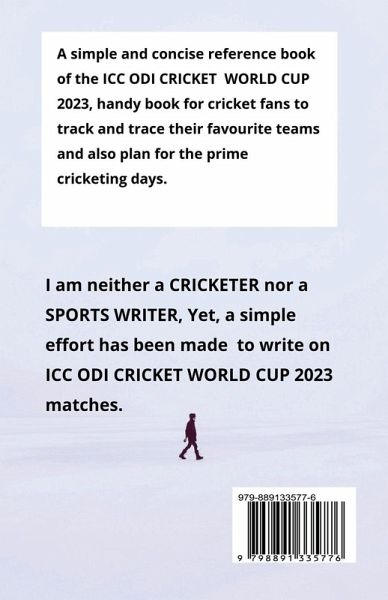A simple and concise reference book of the ICC ODI CRICKET WORLD CUP 2023, handy book for cricket fans to track and trace their favourite teams and also plan for the prime cricketing days.