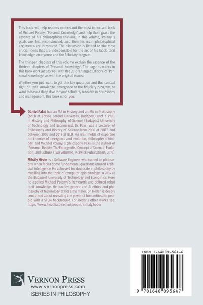 This book will help readers understand the most important book of Michael Polanyi, 'Personal Knowledge', and help them grasp the essence of his philosophical thinking. In this volume, Polanyi's goals are first reconstructed, and then his main philosophical arguments are introduced. The discussion is limited to the most crucial ideas that are indispensable for the arc of his book: tacit knowledge, emergence and the fiduciary program. The thirteen chapters of this volume explain the essence of the thirteen chapters of 'Personal Knowledge'. The page numbers in this book work just as well with the 2015 'Enlarged Edition' of 'Personal Knowledge' as with the original issues. Whether you just want to get the key quotation and the context right on tacit knowledge, emergence or the fiduciary program, or want to have a deep dive for your scholarly research in philosophy and management, this book is for you.