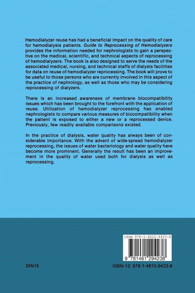 The purpose of this book is to provide information for the nephrologist to gain a perspective on the medical, scientific, and technical aspects of reprocess ing of hemodialyzers. The book is also designed to serve the needs of the associated medical, nursing, and technical staffs of dialysis facilities for data on reuse of hemodialyzers. As an information source, the book will prove to be useful for those who may be considering reprocessing of dialyzers, as well as persons who are currently involved in this aspect of the practice of nephrology. We have focused on the clinical and technological aspects of hemodialyzer reprocessing and have not dealt with socioeconomic considerations. We do wish to share with physicians performing hemodialysis several observations we have made as a result of assembling this volume. We believe that hemodialyzer reuse has had a beneficial impact on the quality of care for hemodialysis patients in consideration of the following factors. There is an increased awareness of membrane biocompatibility issues that has been brought to the forefront with the application of reuse. Utilization ofhemodialyzer reprocess ing has enabled nephrologists . to compare the effect of various measures on biocompatibility when the patient is exposed to either a new or a reprocessed device. Previously, few readily available comparisons existed. In the practice of dialysis, water quality has always been of considerable importance. With the advent of widespread hemodialyzer reprocessing, the issues of water bacteriology and water quality have become more prominent.