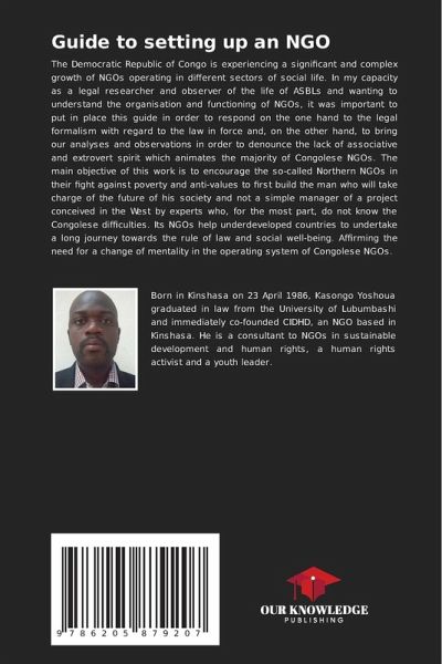 The Democratic Republic of Congo is experiencing a significant and complex growth of NGOs operating in different sectors of social life. In my capacity as a legal researcher and observer of the life of ASBLs and wanting to understand the organisation and functioning of NGOs, it was important to put in place this guide in order to respond on the one hand to the legal formalism with regard to the law in force and, on the other hand, to bring our analyses and observations in order to denounce the lack of associative and extrovert spirit which animates the majority of Congolese NGOs. The main objective of this work is to encourage the so-called Northern NGOs in their fight against poverty and anti-values to first build the man who will take charge of the future of his society and not a simple manager of a project conceived in the West by experts who, for the most part, do not know the Congolese difficulties. Its NGOs help underdeveloped countries to undertake a long journey towards the rule of law and social well-being. Affirming the need for a change of mentality in the operating system of Congolese NGOs.