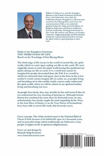 This guide is offered for Blessed Central Families to better understand the three stages of life, according to the teachings of Sun Myung Moon. "We go through the realm of water in our mother's womb, then the realm of the planet earth and finally the heavenly realm of floating in air. We go through the period in the water of the womb and are born into the world. We live in our physical body in this world for about a hundred years, until we enter the world in which we fly through the air. We pass through these three realms." The primary focus of this volume is the third stage, which marks the end of life in the physical realm and the beginning of life in the eternal Spirit World. The time of ascension is a challenging transition for families and friends, and it is hoped that this resource will lessen the stress and give families reassurance that they are doing everything essential to support the person who is ascending and their loved ones.