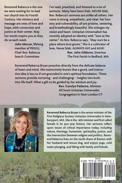 Guided by Love is a collection of sermons by Unitarian Universalist minister, Reverend Rebecca M. Bryan. These missives were delivered to her congregation in Newburyport, Massachusetts, between 2018 - 2024. Rev. Rebecca reflects upon enduring issues of critical importance today. Her topics include the climate, love, healing, racial justice, the intersection between religion and politics, authenticity, community, grief, and joy. Her words are honest, inspiring, and sometimes funny. Her open heart challenges the reader to consider important topics that all of us will benefit from as we find our way in this troubled and beautiful world.