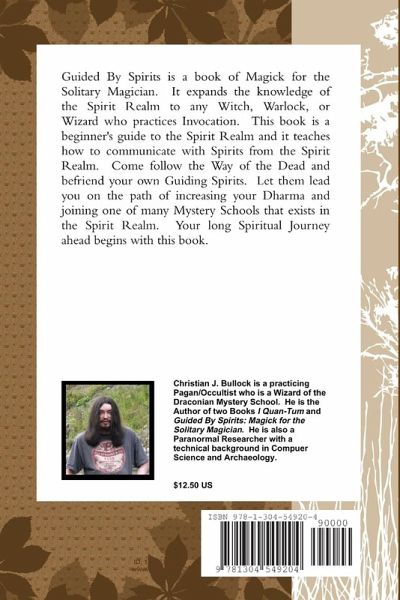 Guided By Spirits is a Solitary Magician's guide to Magick. It teaches knowledge of the Spirit Realm and how to contact your very own Spirit Guides. The book is a beginners take on Magick, Spirituality, and Mystery Schools. This book will guide you through the basics of increasing your Dharma in this life and finding out about the Spirit Realm. A long Spiritual Journey lies ahead of you take the first step with this book.