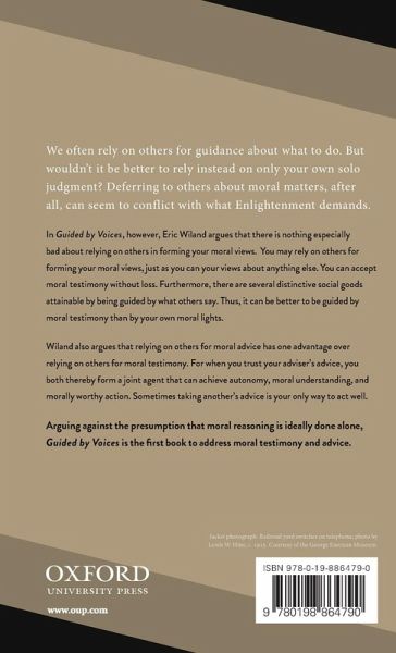 We often rely on others for guidance about what to do. But wouldn't it be better to rely instead on only our own judgment? Eric Wiland argues that we can accept moral testimony without loss, that there are several distinctive social goods attainable by being guided by others, and that sometimes taking another's advice is the only way to act well.