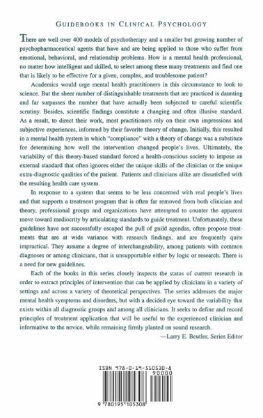 From initial consultation to termination of treatment, psychologists and other mental health practitioners make a series of crucial decisions to determine the progress and therapy of the patient. These decisions have varied implications such as the clinical course of the patient, the efficacy and efficiency of the treatment, and the cost of the sessions. Thus, the decisions made by mental health professionals need to be accurate and consistent, respecting a series of guidelines that will ultimately benefit the patient. This is the first in a series of guidebooks that is designed to do just that by providing practitioners with some structure in the development of treatment programmes. Previous guidelines have been based on consensus panels of experts or on the opinions of membership groups, causing guidelines to be very far off from the findings of empirical research. Here, guidelines are presented in terms of treatment principles rather than in terms of specific treatment models or theories, and they do not favour one theory of psychotherapy over another. Instead, they define strategies and considerations that can be woven into comprehensive treatment programmes. The entire series of guidebooks will cover numerous topics, including anxiety disorders, drug abuse, alcohol abuse, and treatment of serious mental disorders. This volume will cover in detail the nature of depression, issues in treatment research, contemporary treatments, and implications for education and training. It is ideal for postgraduates and professionals in the mental health field and is intended to provide important background on treatment of non-bipolar depressive disorders.